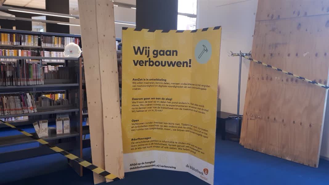 De werkzaamheden zijn onderdeel van de verbouwing van de bibliotheek, waardoor er onder andere vergaderruimtes, een leescafé en nieuwe jeugdafdeling wordt gerealiseerd.
