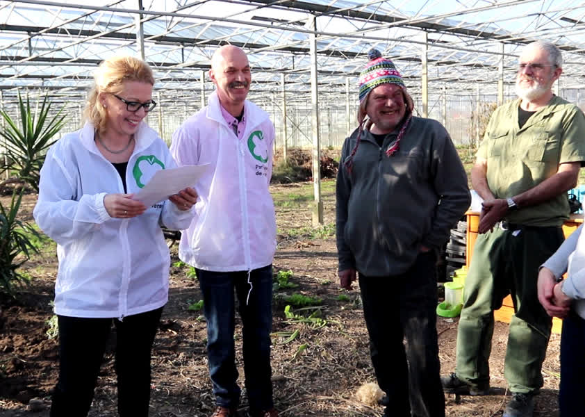 De vrijwilligers krijgen de oorkonde, omdat ze zich op een respectvolle manier inzetten voor mens, dier en milieu. In de kas wordt op een biologische manier groente verbouwd. Een deel daarvan wordt verkocht. Een ander deel gaat naar een voedselbank.
