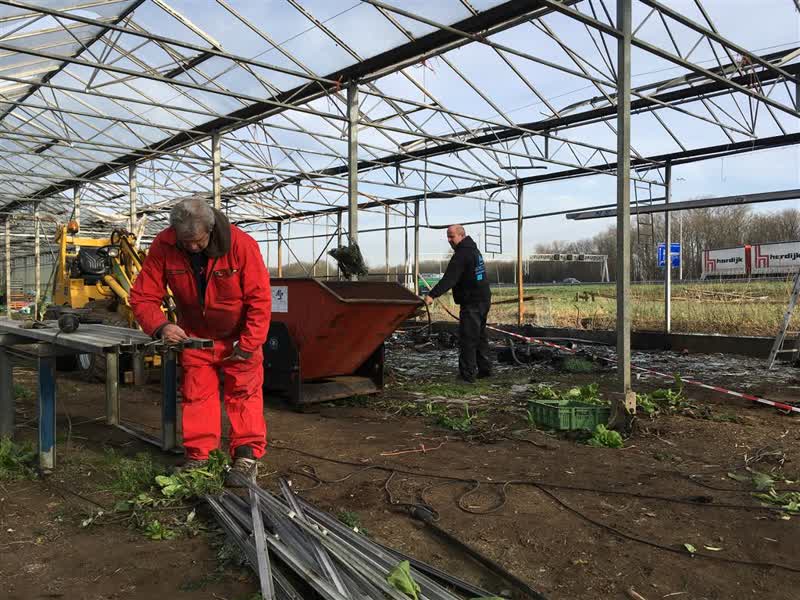 Een kassenbouwer is vandaag begonnen met de reparatie van stadslandbouwkas De Oude Beer aan de Rijksstraatweg. In oktober was er brand. De vrijwilligers waren bijna al hun spullen kwijt en de groenten konden niet meer worden gegeten.