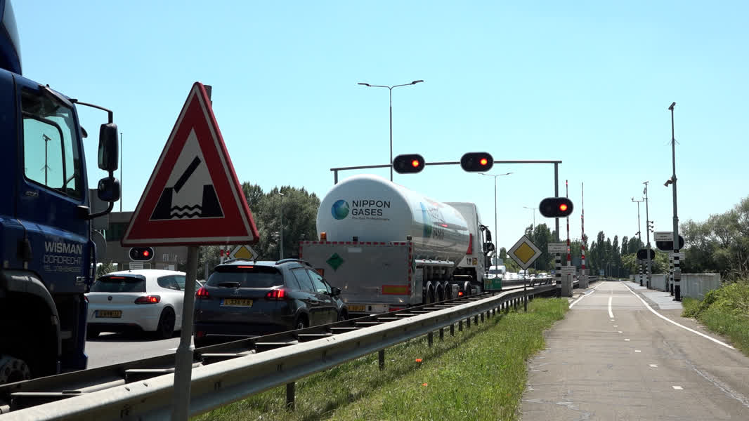 Door een technische storing aan de slagbomen van de Wantijbrug heeft verkeer rond het middaguur een ...