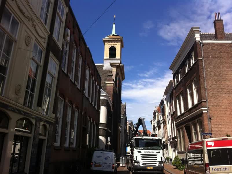 Door de harde wind is het koperen dakbeschot er afgewaaid. De brandweer is ook ter plaatse geweest. De Wijnstraat is ter hoogte van de kerk afgesloten. Zover bekend is er niemand gewond geraakt.