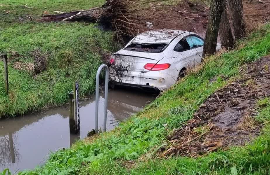 112-nieuws: auto belandt in sloot en raakt flink beschadigd