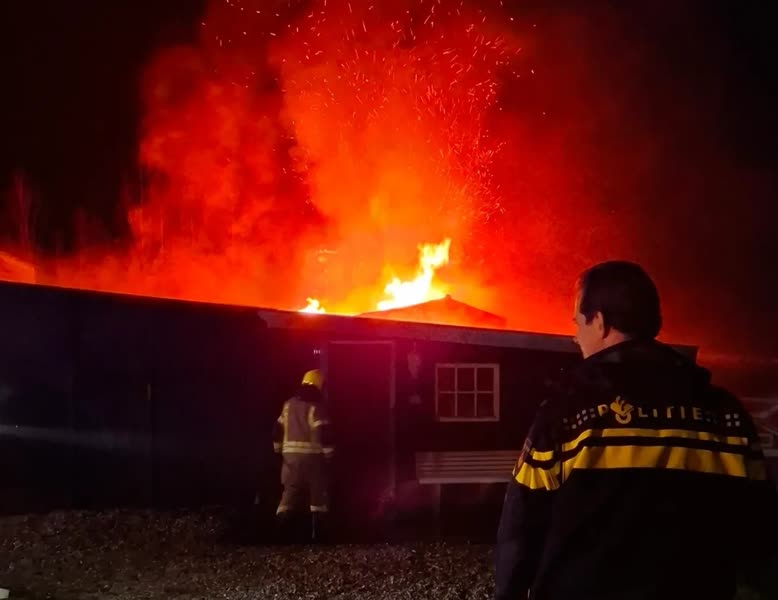 De vlammen sloegen metershoog uit de schuur Politie Lek en Merwede