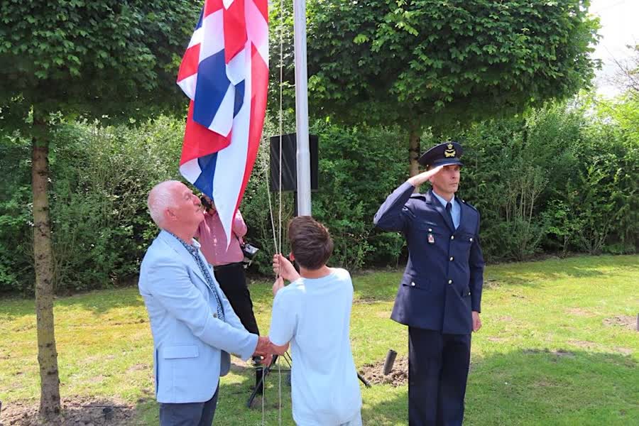 Vervolgens werden de vlaggen van Groot-Brittannië, Canada en Nederland, die halfstok hingen, in top gehesen, waarbij de volksliederen van deze landen door Harpe Davids werden gespeeld. Daarmee kwam een einde aan de herdenking.