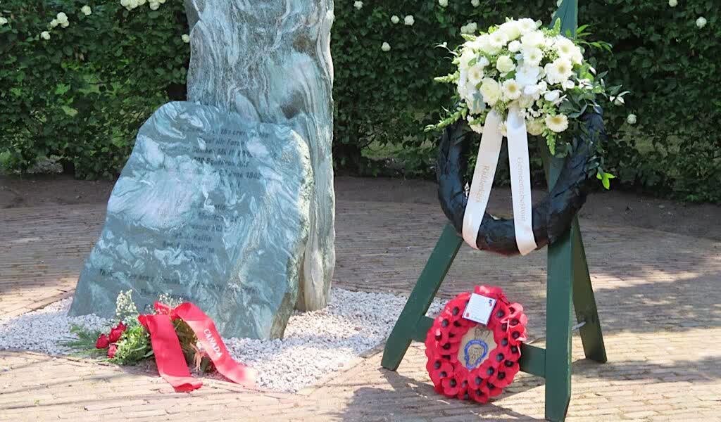 Hierna droegen enkele leerlingen van De Piramide gedichten voor. Er werd een moment van stilte in acht genomen, waarna bloemen bij het monument werden geplaatst. Burgemeester Marco Oosterwijk legde samen met kinderburgemeester Maya van den Ham een krans, dat deed ook Elsa van Gelderen namens The Royal British Legion en adjudante Nicole Mitchell namens de Canadese ambassade. Leerlingen van basisschool De Piramide, de school die het monument in 2005 adopteerde, legden allemaal een roos bij het monument.