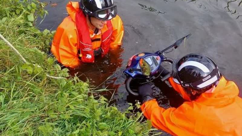 Man rijdt met scootmobiel in sloot, voorbijganger houdt hoofd slachtoffer boven water