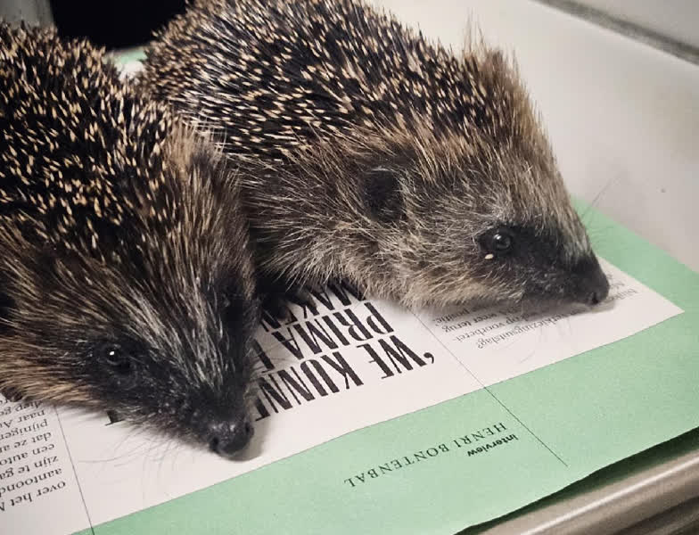 “Vandaag mochten we egel nummer 999 en 1000 inschrijven!”, luidt het bericht op de Facebook-pagina van de egelopvang. Twee paar kraaloogjes kijken in de camera. Ze liggen op een weegschaal en liggen er wat hulpeloos bij. Dit zijn geen volwassen dieren: dit zijn jonge egels.