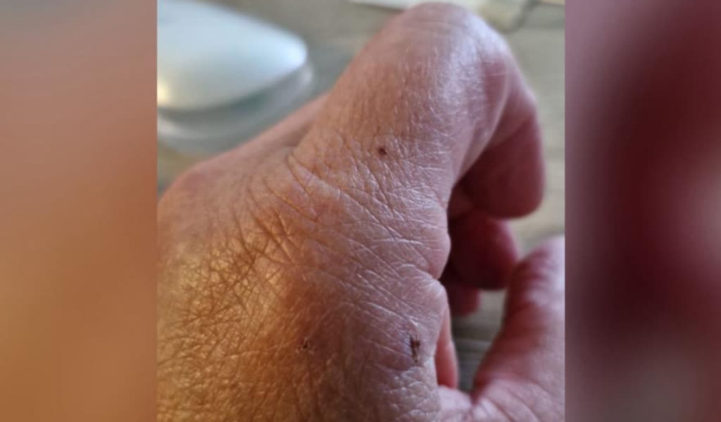De Sliedrechter bekijkt zijn vinger goed. "Ik dacht: verrek, er zit iets dat er niet eerder zat. Het zal toch niet? Ik had al een wondje van een kat op mijn hand, maar het stipje daarboven op mijn wijsvinger niet." Hij twijfelt niet langer: het is een vleermuisbeet. Niks heeft hij ervan gevoeld. "Ik heb ook de handschoen nog eens goed bekeken en ik weet hoe ik het diertje vastpakte. Hoewel de handschoenen dik genoeg zijn, is er toch bij een stikseltje een hoektand doorheen gekomen."