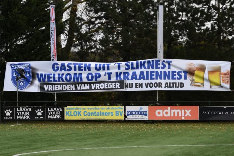 Ondanks het feit dat beide clubs uit de gemeente Ridderkerk afkomstig zijn, is er van enige rivaliteit geen sprake. Sterker nog: de clubs dragen elkaar een bijzonder warm hart toe, zo werd duidelijk bij de opkomst van de spelers. Een groot spandoek werd ontvouwd met daarop de tekst: 'Gasten uit het Sliknest, Welkom op het Kraaienest. Vrienden van Vroeger, Nu en Voor Altijd'.