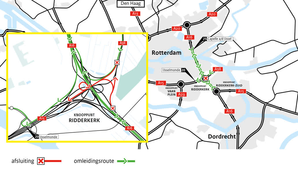 Let op: extra drukte op komst door afsluitingen bij knooppunt Ridderkerk