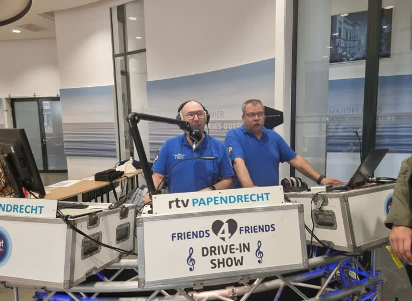 (rechts) Erik Vastenouw tijdens zijn drive-in show Papendrecht.net