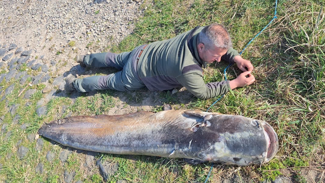 De meerval bleek maar liefst 240 cm lang te zijn. "We weten dat er exemplaren rondzwemmen van ruim 200 cm, soms zelfs meer dan 250 cm. Maar het blijven bijzondere waarnemingen." Om de indrukwekkende grootte van het dier te illustreren, ging de boswachter zelf naast de meerval op de foto.