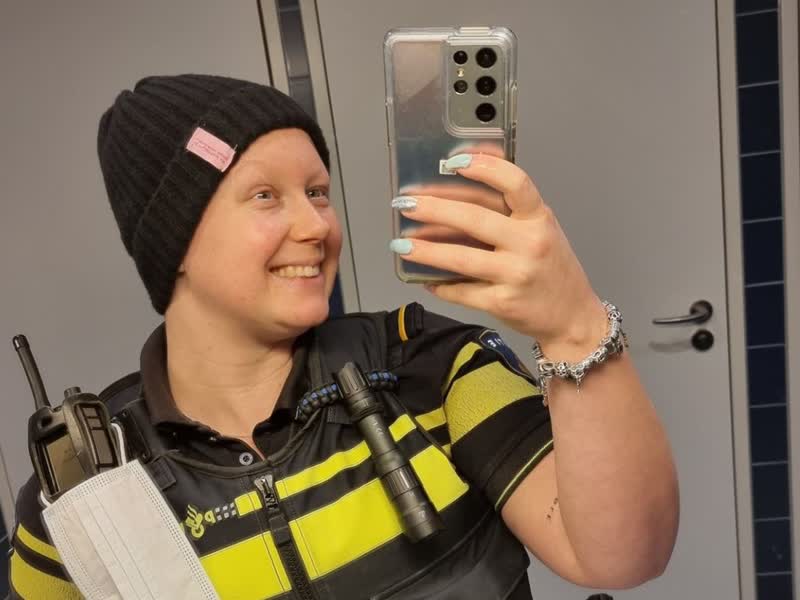 Toch ging al snel de knop om bij de Ridderkerkse. De prognose was goed en ze was vastbesloten om beter te worden en alsnog hoofdagent te worden. “Ik heb de eerste weken – voordat ik chemo kreeg – nog volle bak gewerkt (als agent in opleiding, red.). Ik dacht: ‘Ik ga daar mijn uniform in de kast hangen en ik weet niet wanneer en of ik ‘m überhaupt nog wel eruit ga halen.’”