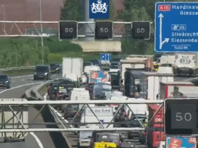 Weggebruikers op de A15 bij Hardinxveld-Giessendam liepen maandagmiddag vertraging op richting Ridde...