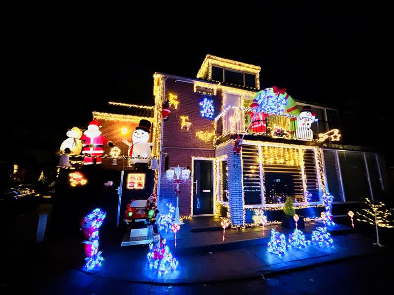 De versieringen begonnen ooit met de contouren van een raam. Daarna volgden een verdieping en de dakkapel. “Op een gegeven moment dacht ik: ik wil alle contouren van het huis. Het is een verslaving geworden.” Elk jaar wil Edwin een nieuw element introduceren, dit jaar is het een rijdende elektrische auto waar kinderen op kunnen spelen. "Overdag staat het hier vol met kinderen.”