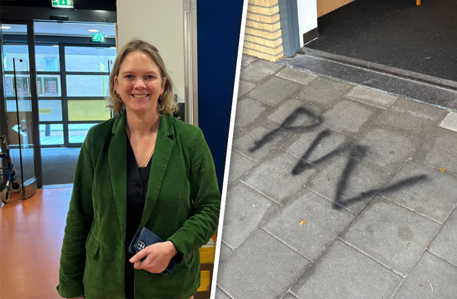 Even verderop is een stembureau in de bibliotheek aan de Scheldelaan gevestigd. Daar aangekomen is de volgende betuiging niet te missen, bij de ingang zijn de letters PVV te lezen. Die zijn daar met een spuitbus op de stoeptegels gespoten. Over de dader is niets bekend, of het om een steunbetuiging of een waarschuwing gaat is ook niet duidelijk.