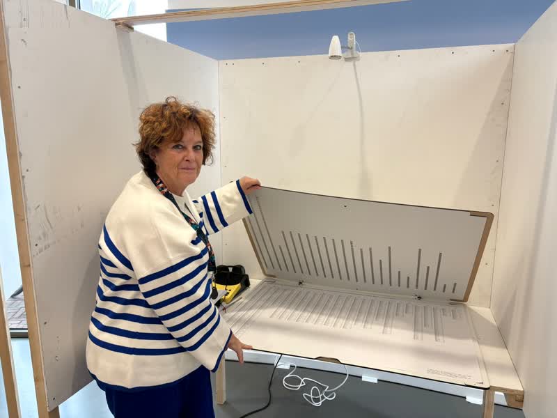 Jozé Vos toont het speciale stemloket voor blinden en slechtzienden Streekomroep56