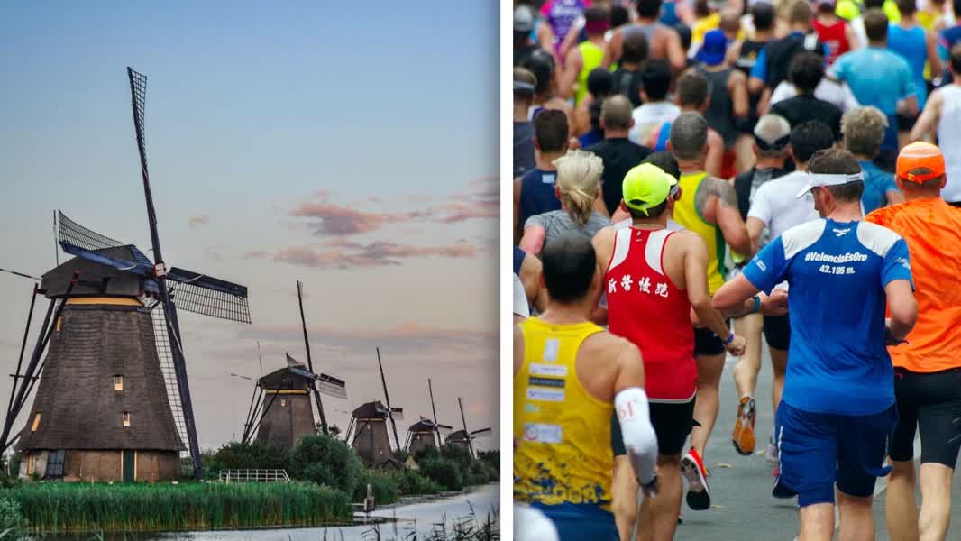 De molens in Kinderdijk en marathondeelnemers Rick Huijzer/Pixabay