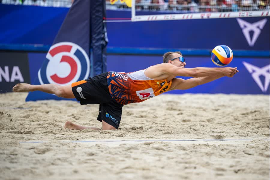 En dat is gelukt. Samen met zijn partner Stefan Boermans is hij geplaatst voor de Spelen in Parijs. De aanloop was in eerste instantie hobbelig. Beiden hadden last van blessures. De Groot had een hernia en kon maanden niet spelen. Gelukkig voor De Groot begon de olympische cyclus om je te kunnen plaatsen in 2023. En toen was hij dus fit genoeg. “Ik heb er lang uit gelegen. De hernia zat in het midden van mijn rug. Volgens de artsen was het een zeldzame plek en is de kans dat de blessure terugkomt klein”, zegt hij. “Toch blijf je opletten.”