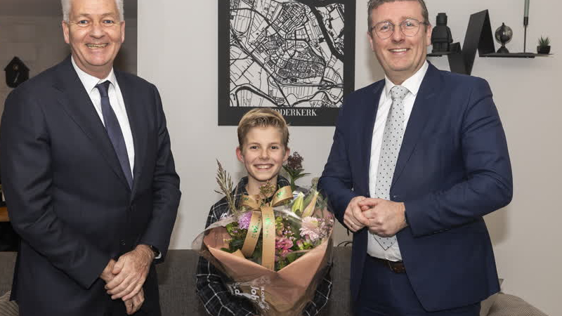 Een bijzonder moment dinsdagavond in het gemeentehuis van Zwijndrecht: de 11-jarige Daan van den Hoe...