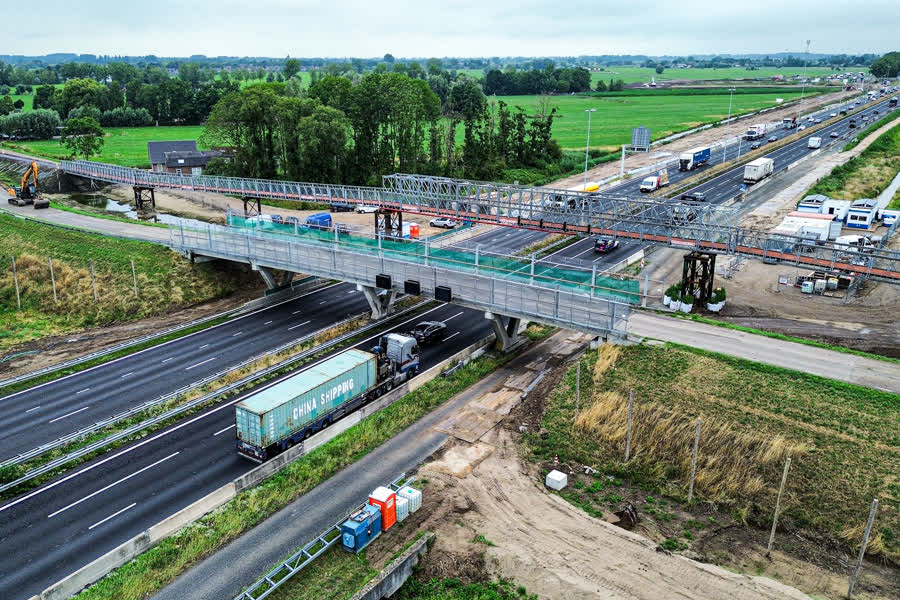 Extra licht en hek geplaatst bij tijdelijke brug over A27
