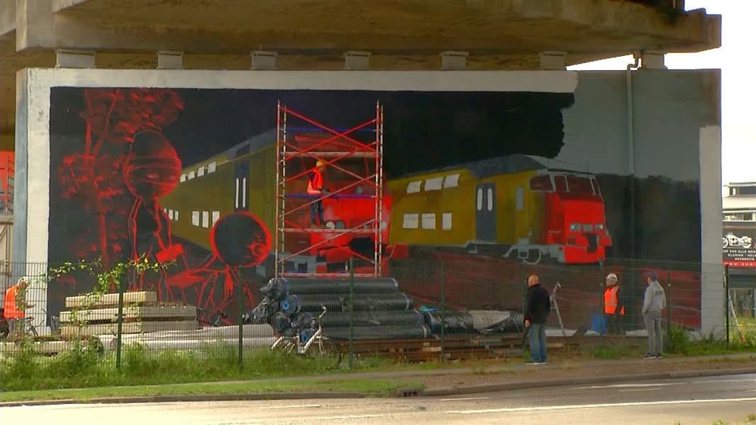 Op de pilaren staat een mix van graffiti en muurschilderingen. “Eigenlijk alles wat op straat kunst is, is street art en alles wat met een spuitbus gedaan wordt, is graffiti. Je ziet op de muren zowel afbeeldingen als graffititeksten.”