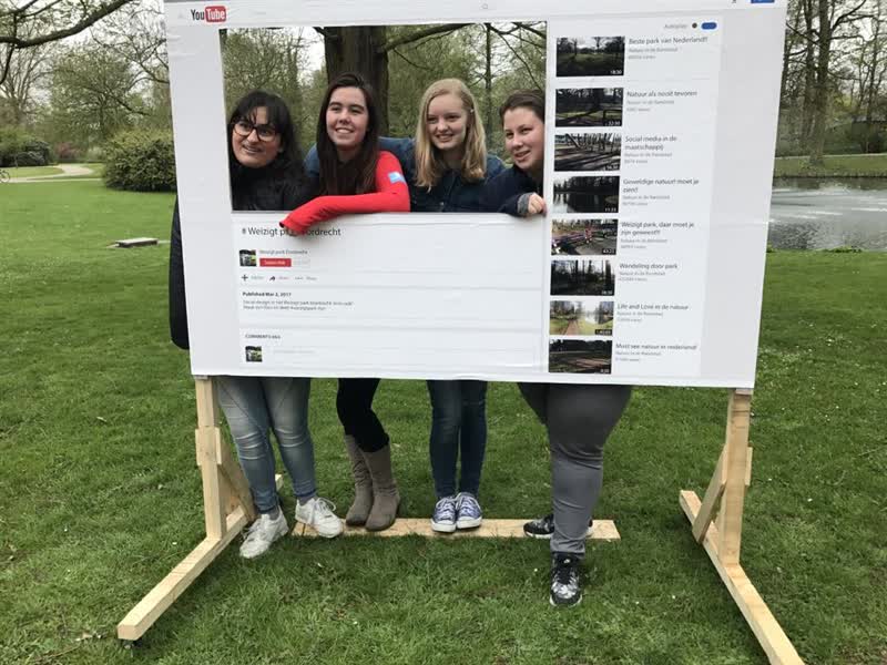 In het Weizigtpark stonden vandaag vier studenten met een groot zelfgemaakt YouTube-scherm.