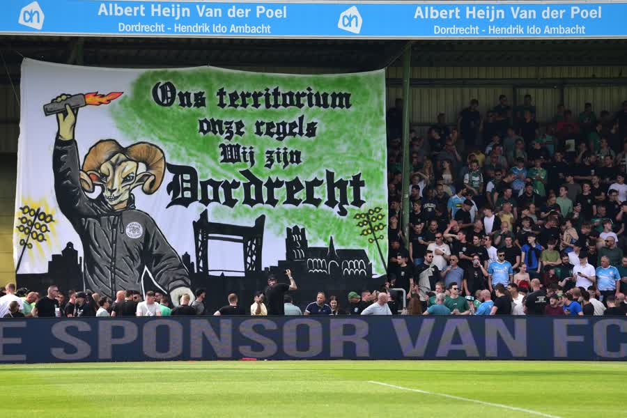 Dit fraaie doek op de westtribune moest FC Dordrecht extra steun bieden René Kamps