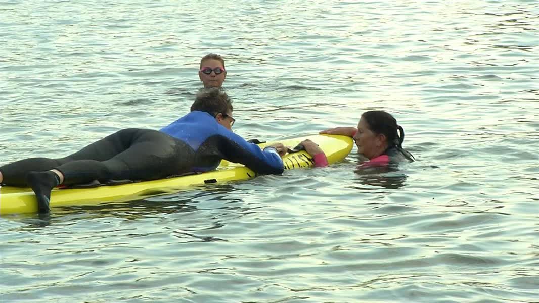 De reddingsbrigade zet rescueboards in om zwemmers met problemen tijdens de Cityswim te kunnen helpen. Op deze surfboards kan je veilig en snel tussen de zwemmers door manoeuvreren.