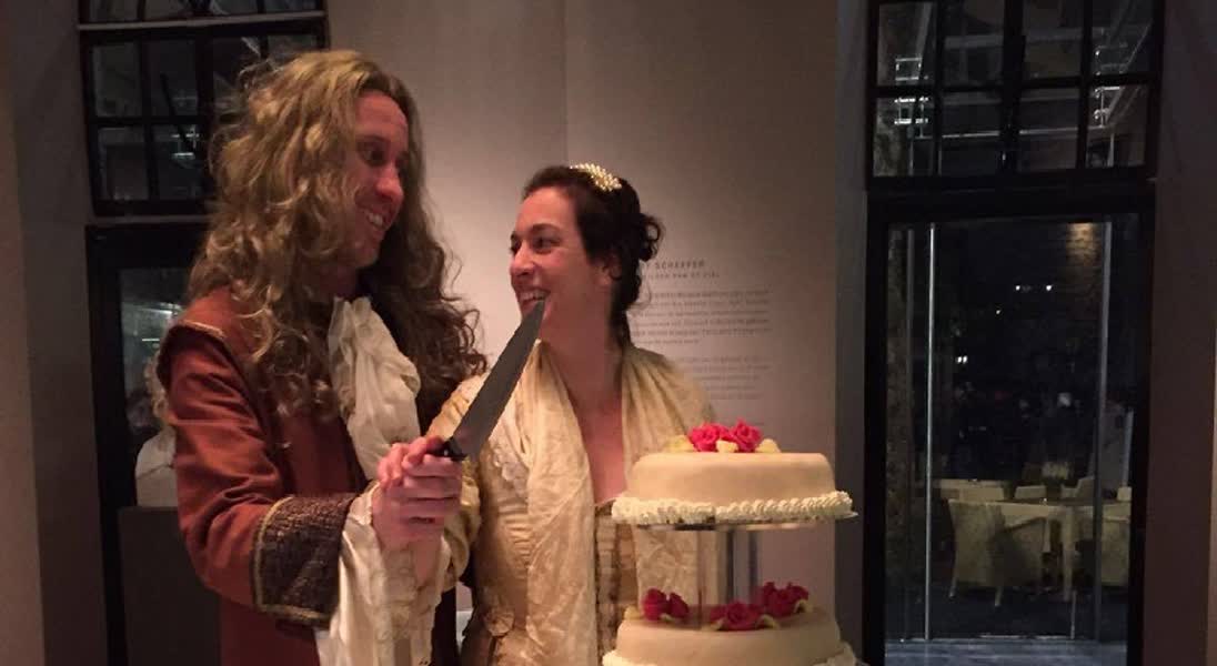 Na de bijeenkomst in de konden de aanwezigen de tentoonstelling in het Dordrechts Museum bezoeken. In restaurant Art and Dining sneed het echtpaar Schalcken de bruidstaart aan.