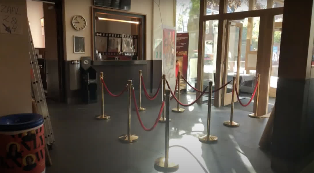 De Dordtse bioscoop aan de Nieuwstraat heeft looplijnen aangebracht in het gebouw. Ook de kaartverkoop is anders dan gewend. "Mensen moeten hun kaartjes zoveel mogelijk online kopen, zodat we aan de kassa niet allerlei dingen hoeven te doen."