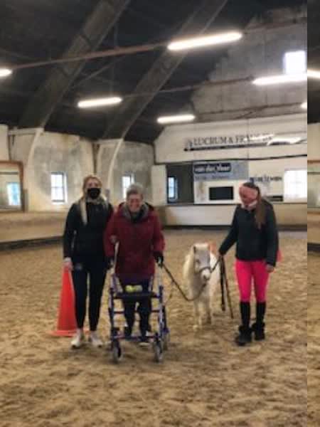 Bewoner Marcella Weeterinks stapt langzaam uit haar rolstoel als het kleine, witte paard naar haar toe komt huppelen. “Dit is Duval, mijn favoriet”, laat de oudere vrouw weten. Elke vrijdagochtend gaan de bewoners van het woonzorgcentrum onder begeleiding van een bewegingsagoog naar De Dordtsche Manege. “Ik heb sinds mijn 29e levensjaar de diagnose MS. Het is soms lastig om gemotiveerd te blijven. Deze dieren helpen mij enorm”.