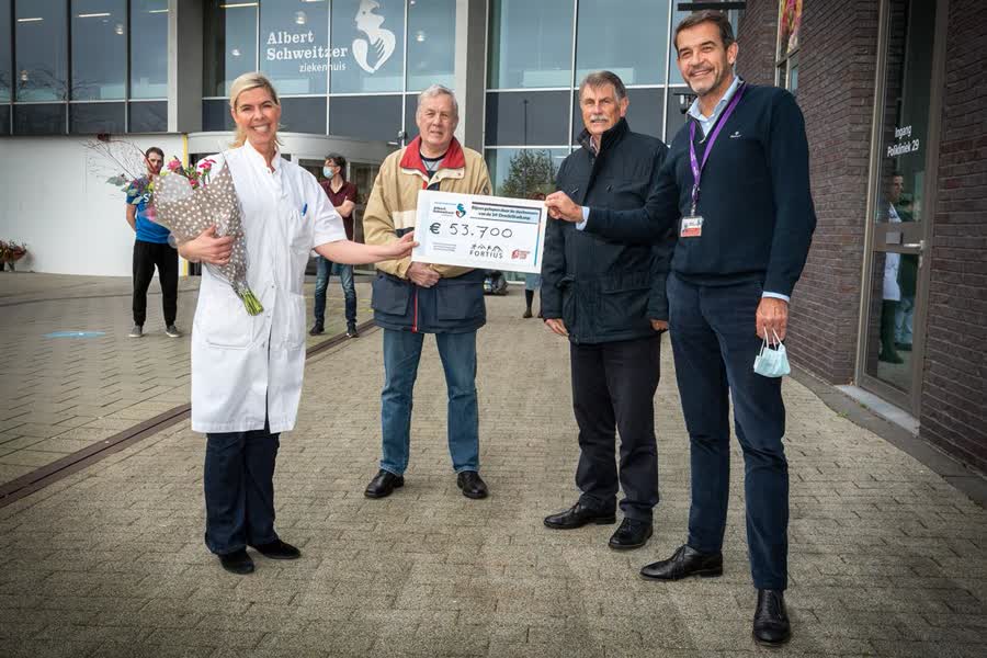 Drechtstadloopvoorzitter Cor van der Steen heeft afgelopen vrijdag de cheque met de recordopbrengst overhandigd aan neuroloog Janet de Beukelaar van het Albert Schweitzer ziekenhuis. De opbrengst is groter dan de eerdere editie. In 2019 was er 5000 euro opgehaald. Het geld zal gaan naar de zogeheten SPIN-P-studie: een vanuit het Albert Schweitzer ziekenhuis en het Erasmus MC gecoördineerd wetenschappelijk onderzoek naar behandelmethoden voor de ziekte Primair Progressieve Multiple Sclerose (PPMS). De Beukelaar is blij met de donatie: “Met het geld voor dit onderzoek willen we weten wat de oorzaak ervan is en werken naar een betere behandeling.”