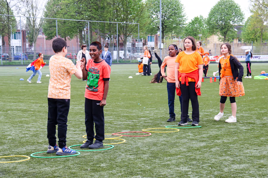 "Zwaai je armen van links naar rechts", klinkt het deze ochtend door de speakers op het terrein van sportclub SSW in Dordrecht. Leerlingen van basisschool de Albatros hebben voor de Koningsspelen die deze donderdag plaatsvindt een speciale dans ingestudeerd op een lied van Kinderen voor Kinderen. Na de dans gaan ze verschillende sportieve spellen doen.