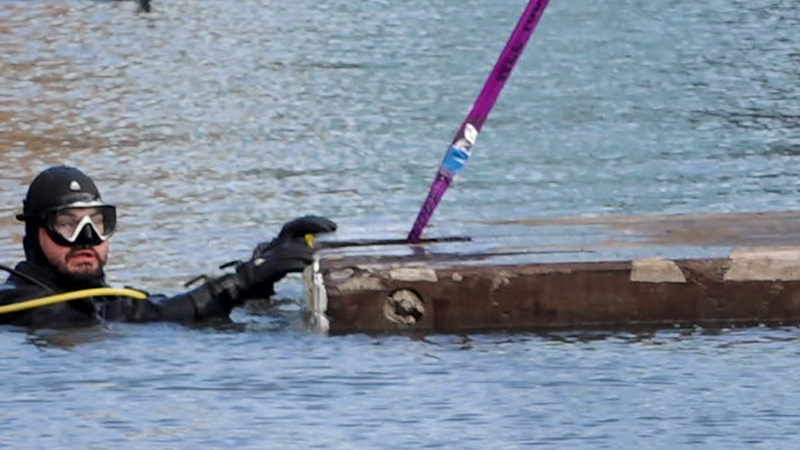 Alles voor ijs in de binnenstad: duiker in het water voor schaatsbaan