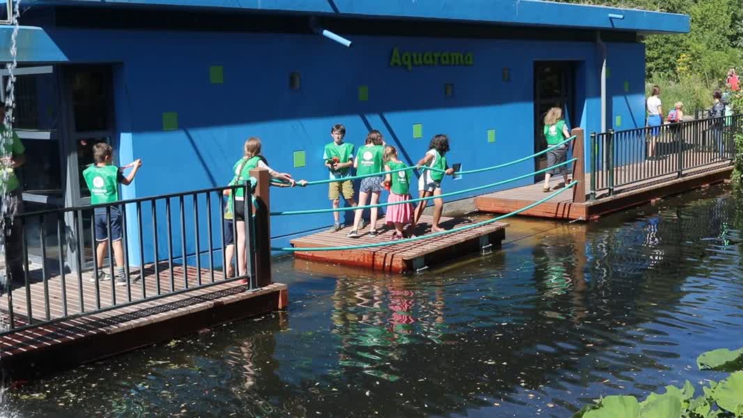 In het Aquarama in Duurzaamheidscentrum Weizigt is gisteren een trekvlot in gebruik genomen. Het trekvlot maakt mogelijk om van de ene kant van het water naar de andere kant te varen.