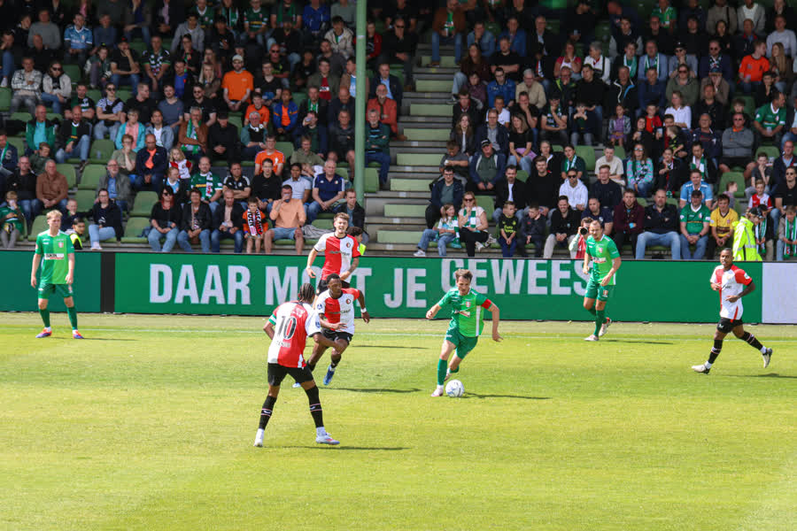 Waar de thuisclub lange tijd prima meekon, ging Feyenoord toch met een ruime voorsprong de rust in. Aanvoerder Calvin Stengs zorgde met een bekeken schot in de verre hoek voor de eerste treffer, Ayase Ueda verdubbelde de voorsprong en Bart Nieuwkoop kopte de 0-3 ruststand op het scorebord.