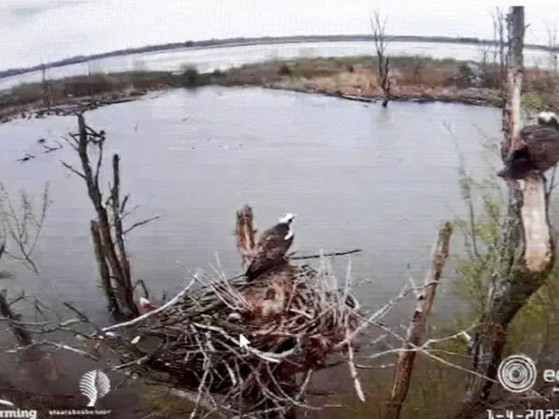 webcam gericht. Vorige week arriveerde daar een Duitse mannetjesvisarend, die al sinds 2016 in de Biesbosch komt om te paren.