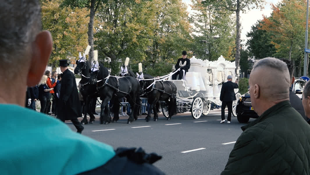 Ronkende motoren, een witte koets, en rouwstoetbegeleiders in pak, leden van de motorclub, en familieleden, in het bijzijn van zijn toekomstige vrouw. Zo werd de uitvaart van de 38-jarige motorrijder Johnny vandaag gedaan door Dordrecht vanaf het Simon Vestdijkerf in Stadspolders naar begraafplaats de Essenhof.