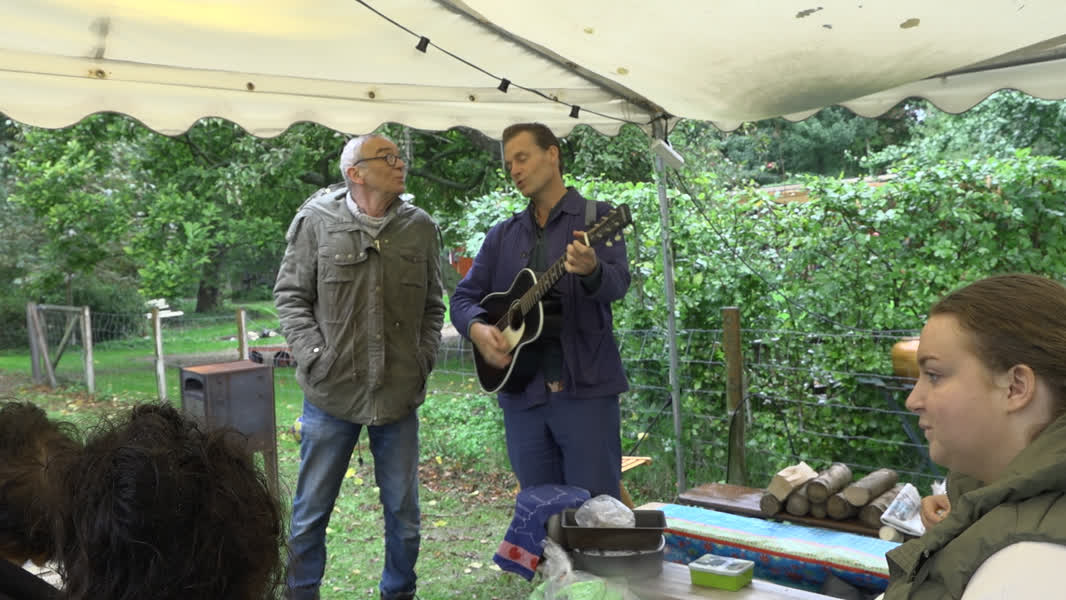 Er stonden verschillende kraampjes bij De Eikenhof met hapjes en drankjes, maar er werden ook sieraden en gehaakte poppetjes verkocht. Ondanks de regen kwamen de buurtgenoten bij elkaar. Zanger en gitarist Maarten Teekens speelde muziek en de kinderen konden spelen op de touwbrug. ''Er is altijd veel werk hier in De Eikenhof en dat kunnen we eigenlijk niet zonder de buren'', vertelt Corrie Ton, eigenaar van De Eikenhof.