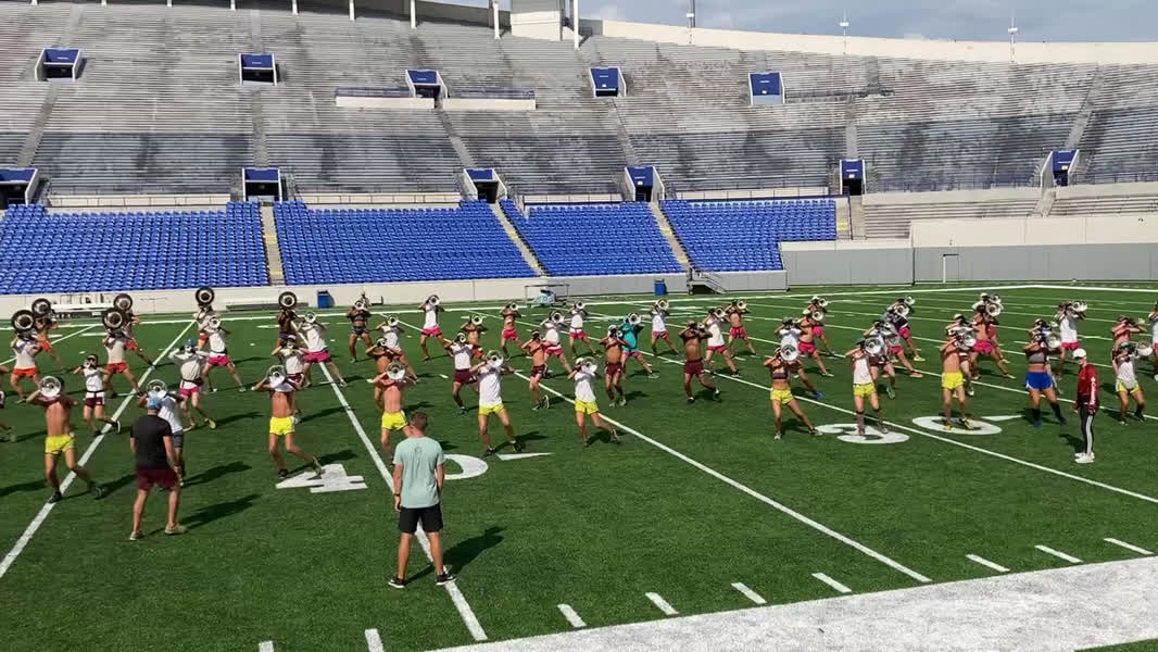 Geen voetbal, maar tromgeroffel en trompetgeschal zaterdagavond op het veld van voetbalclub Oranje ...