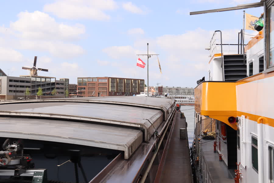 De enige overgebleven Dordtse molen staat op dit moment stil: het gebouw is ingepakt vanwege de rest...