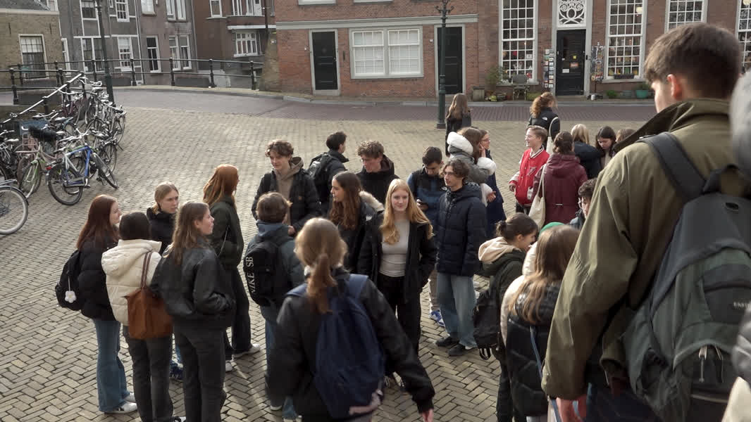 We ontmoeten de leerlingen en hun Europese ‘collega’s’ op het Dordtse stadhuis, waar ze een rondleiding krijgen van wethouder Chris van Benschop. “Ik heb ze verteld wat de positie van Dordrecht is. Geografisch gezien, maar ook vanuit het verleden”, legt Van Benschop uit. “En ik heb ze heel veel plezier gewenst op hun ontdekkingstocht door onze stad.”