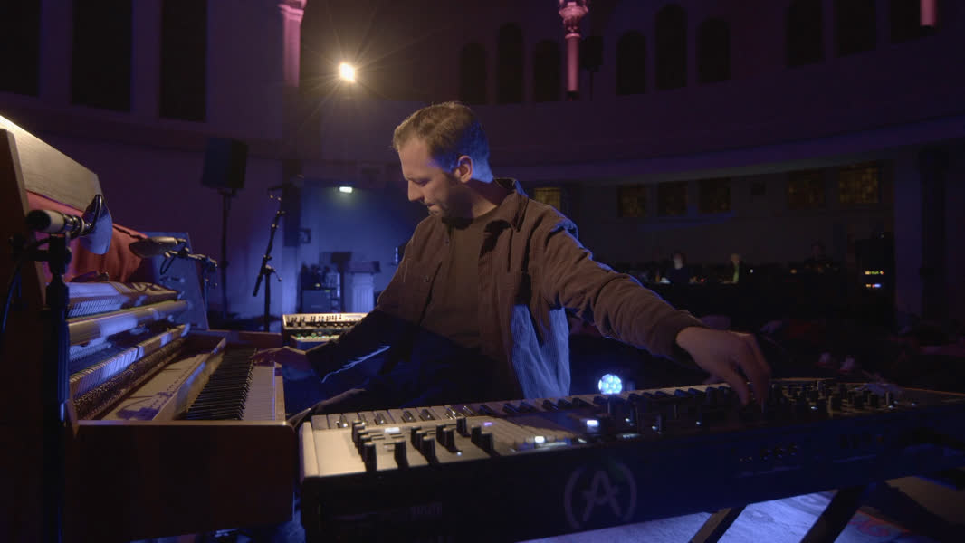 De muziek van Winterdagen en 15. klonk prachtig in de kerk, waarbij het publiek niet naar de artiest keek, maar liggend op een matras genoot van de visuals die op de koepel werden geprojecteerd.