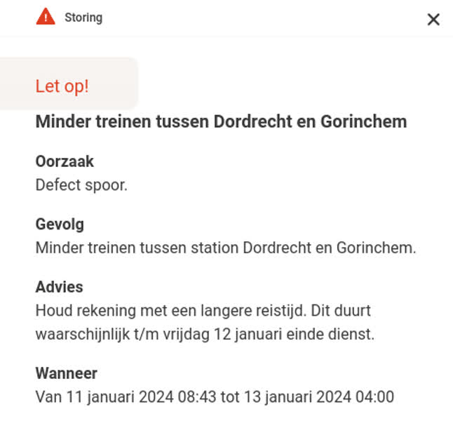 Update defect spoor: dienstregeling nog tot vrijdagnacht gehalveerd tussen Dordt en Gorinchem