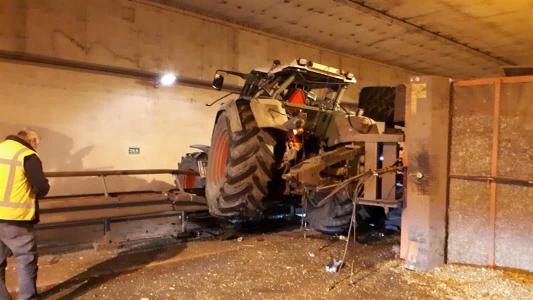 Het is een ravage in de Kiltunnel na het ongeval van vanochtend. Een aanhanger vol met houtsnippers kantelde.