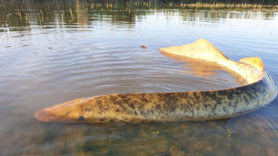 Boswachter Thomas van der Es heeft in de Biesbosch de afgelopen jaren al veel diersoorten voorbij zien zwemmen. Maar van wat hij woensdagavond aantrof, stond hij zelf ook even te kijken. Het was een zeeprik, een zeldzaam waterdier van ruim tachtig centimeter.