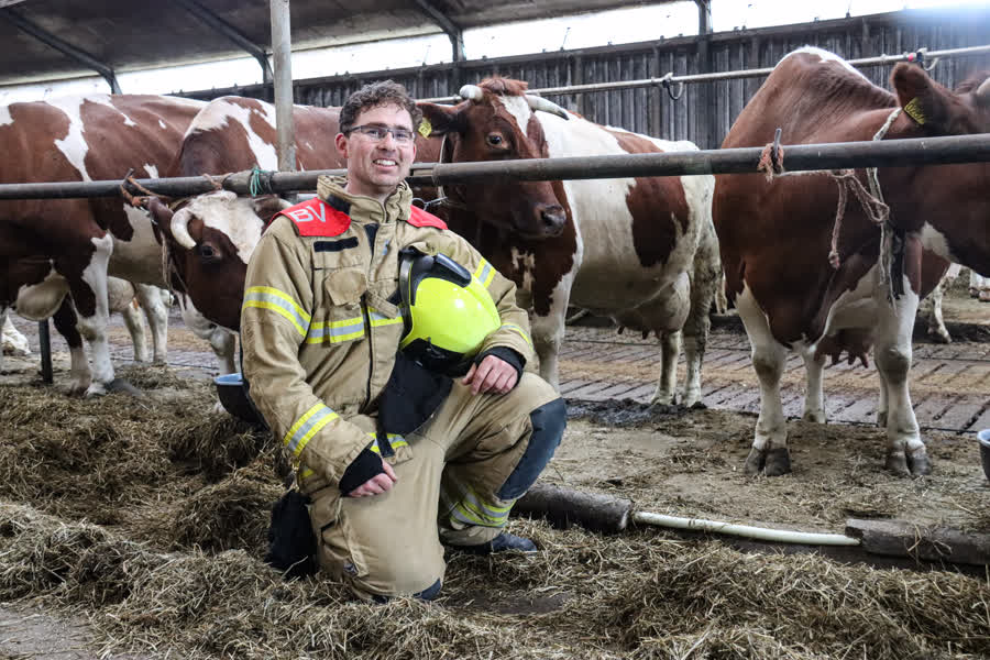 Van koeien voeren tot brand blussen: Dirk is boer én brandweervrijwilliger
