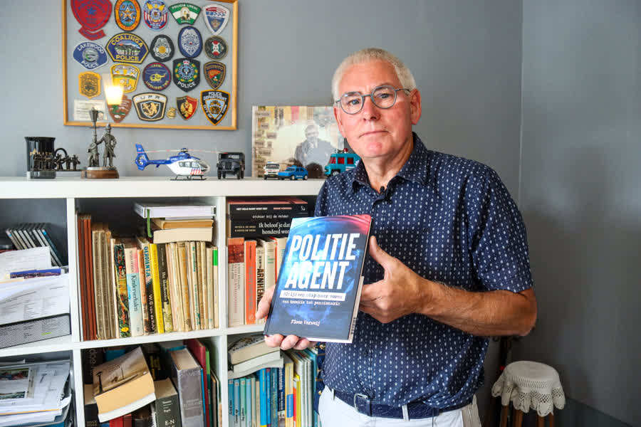Zodoende kan Floor iets moois toevoegen aan de herinneringen van zijn politiewerk. Dat hij een agent in hart en nieren is, merkt iedereen die zijn kantoorkamer binnenloopt. Talloze badges - zelfs van Amerikaanse politiekorpsen, speldjes en zelfs een politiehelikopter: de Alblasserdammer heeft het allemaal in huis. Net als flinke stapels boeken, bedoeld voor de verkoop.