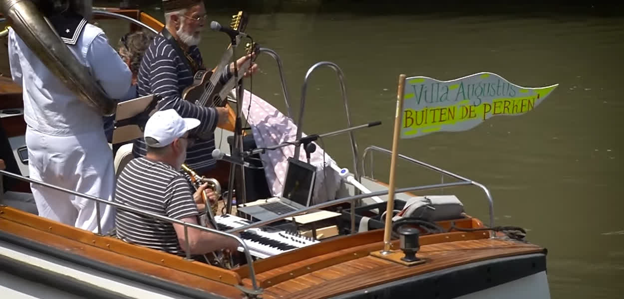 "We hebben als Villa hebben we heel vaak leuke concerten op het terrein binnen, maar we dachten laten we eens een keer buiten de perken gaan. En wat is er mooier in Dordrecht dan al die Dordtse havens", zegt Antoinette Hattem van Villa Augustus. Zo gezegd, zo gedaan. Het bootje van Villa Augustus werd aangekleed en ze nodigde vier muzikanten uit die het publiek op de kade mocht entertainen met hun muziek.